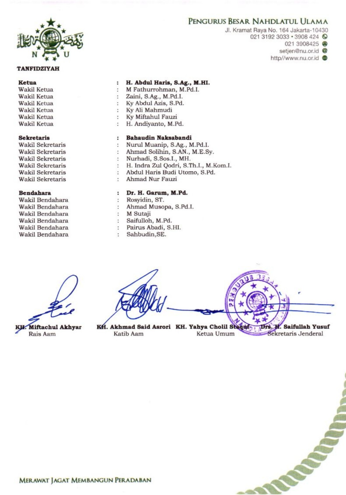 SK Pengurus PCNU Kabupaten Lampung Periode 2024-2029
